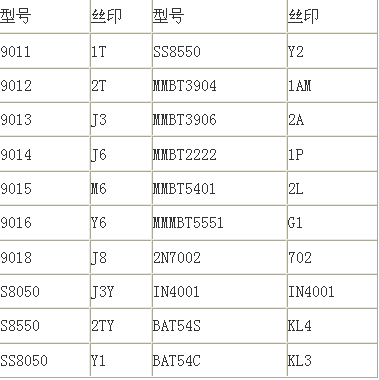 贴片三极管系列:8550 8050 9012 3904 3905 9012 9013 9014 9015 5819……;