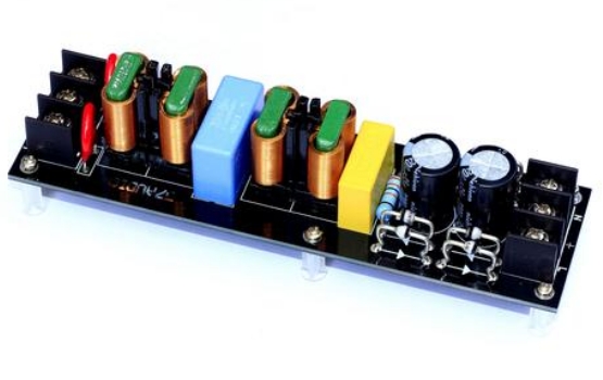 采用平尚三电容并联结构(1μF+100nF+10nF),在1-100MHz频段实现平坦化衰减,波动<±2dB。