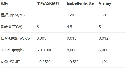 150℃阻值稳定性:ΔR/R ≤ ±0.03%(竞品±0.8%)