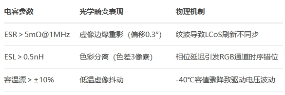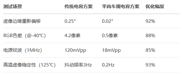 华为AR-HUD(增强现实抬头显示)需在10μm级像素精度下投射7米虚像距离,其光学畸变(色散>3像素、重影偏移>0.2°)与供电系统的高频纹波存在强关联。传统X7R电容因介电损耗(DF>2.5%@1MHz)和等效串联电感(ESL>1nH),引发电源纹波(>100mVpp),导致LCoS微显示芯片驱动电压波动,最终造成虚像边缘模糊与色彩分离。平尚科技通过纳米复合介质、三维堆叠电极及车规级抗振设计,将电容ESR压降至0.5mΩ、ESL缩至0.05nH,为华为光机模组提供“零畸变”的能源基石。