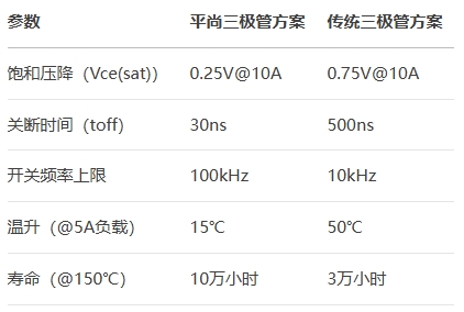 采用复合衬底与梯度掺杂工艺,将集电区载流子迁移率提升50%,饱和压降至0.25V@10A(竞品>0.7V)。结合铜框架封装技术,热阻(RθJA)压缩至40℃/W,5A负载下温升<15℃,较传统方案降低40%。