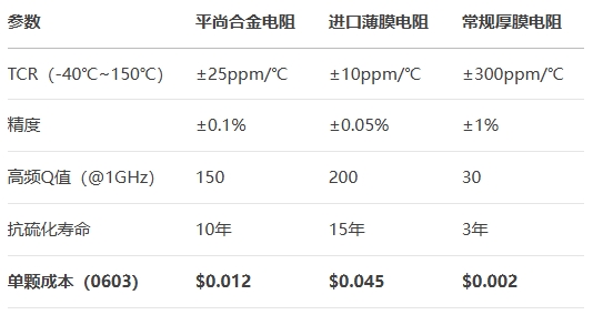 :推荐PSA系列精密合金电阻(TCR±25ppm/℃,精度±0.1%),成本较薄膜电阻低35%;