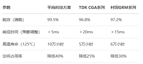 竞品对比与实测验证平尚科技对100μF/450V智能电容进行全维度测试,关键指标显著优于TDK、村田等国际竞品: