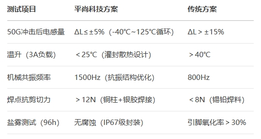 平尚科技通过多维技术整合,构建车载电感的全生命周期可靠性保障体系: