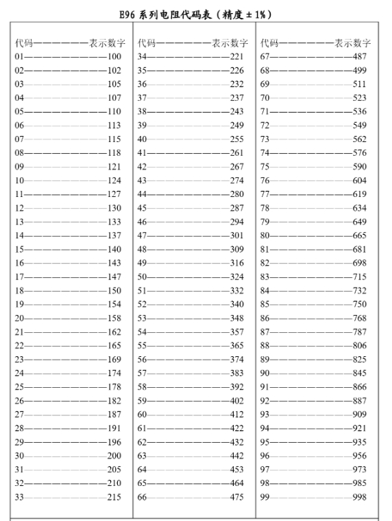 贴片电阻E96数字代码与字母混合标称法